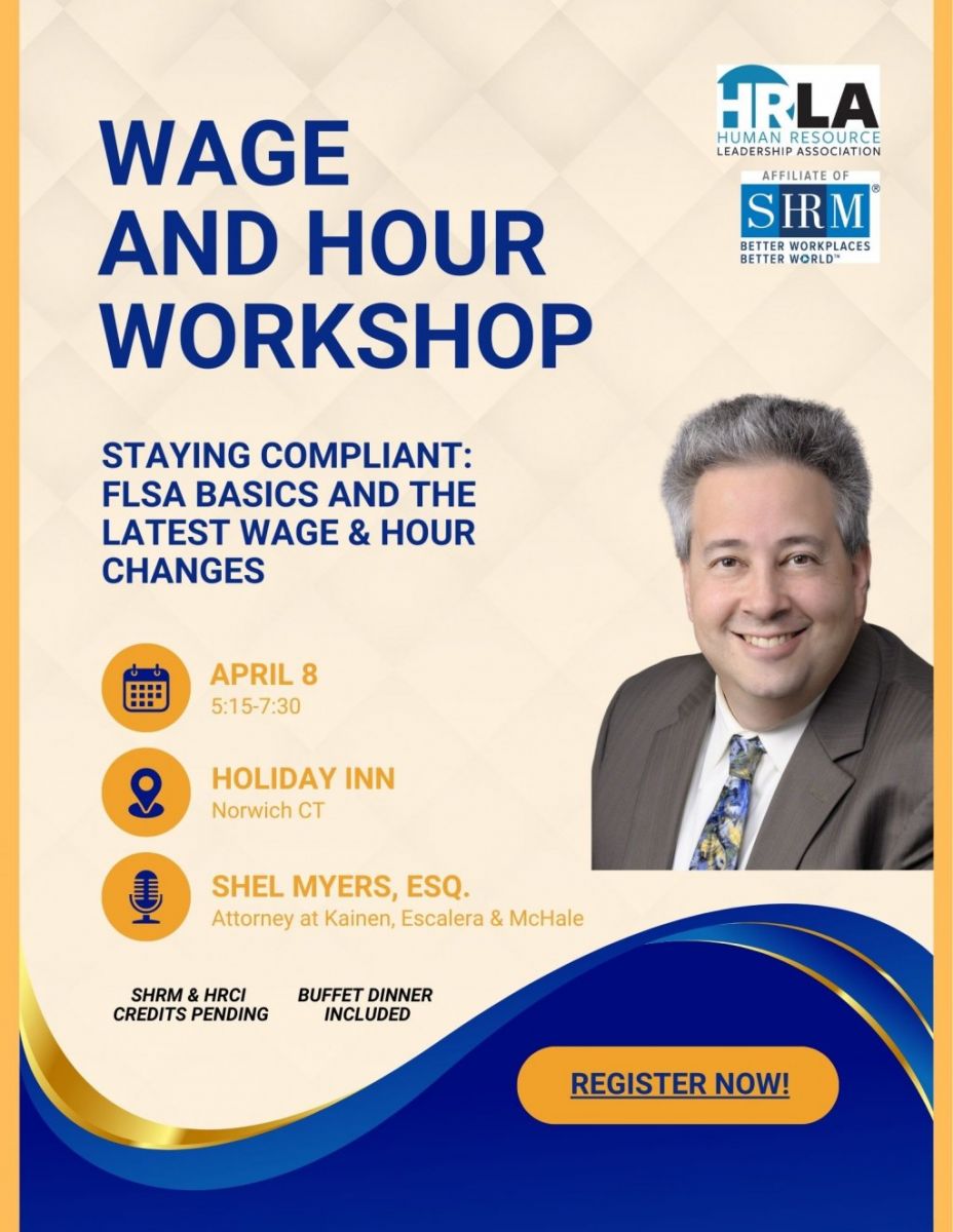 Join us for a focused session led by employment attorney, Shel Myers, covering the key legal essentials HR professionals need to know about CT wage and hour laws. Topics include exempt vs. non‑exempt classifications, working vs. non‑working time, handling unauthorized work, unpaid internship rules, FLSA basics, and the latest wage and hour updates. This brief but practical overview will help HR teams stay compliant and confidently navigate evolving requirements.